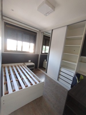 Além disso, possui características como água quente, churrasqueira, interfone, jantar e estar integrados, junker e medidores individuais.
