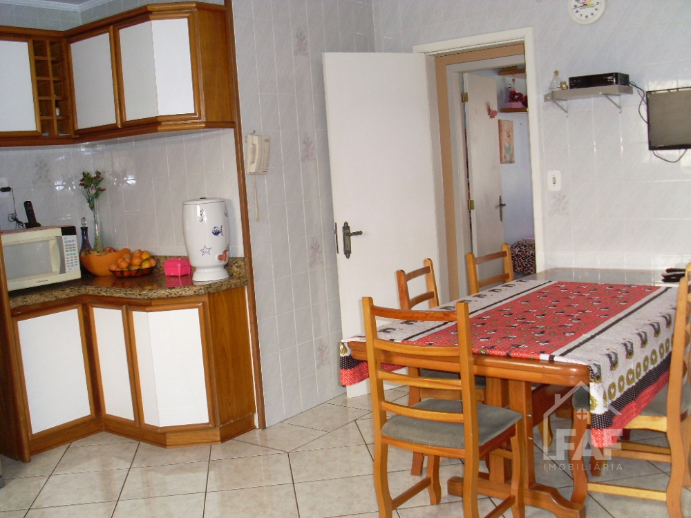 Parte superior composta de três dormitórios sendo um suíte, sala, cozinha, banheiro social, área de serviço.