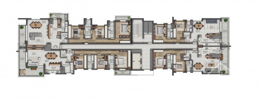 Duas opções de apartamentos com área privativa de 155m² e 166m², com 03 dormitórios, sendo uma suíte e terá a possibilidade de banheiro americano.