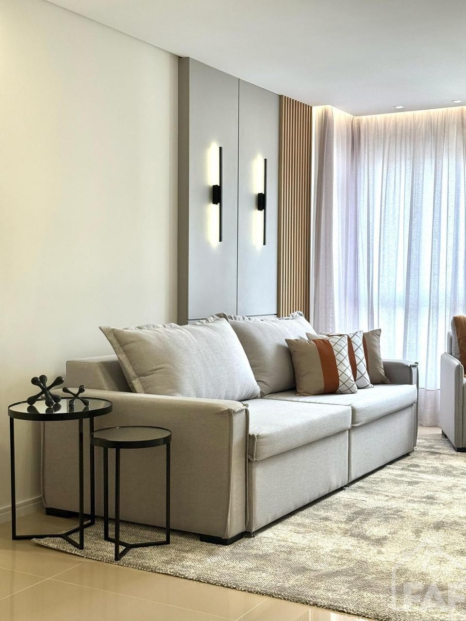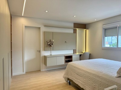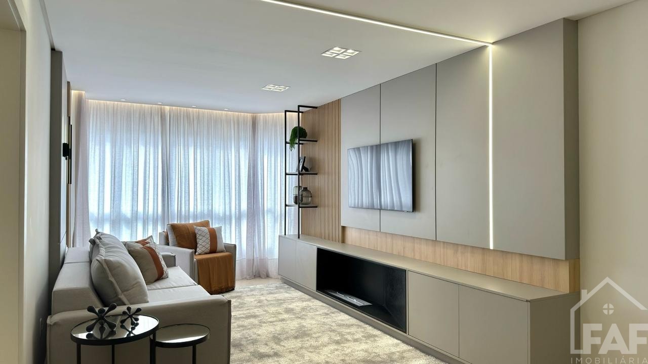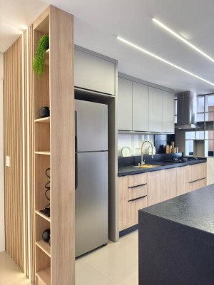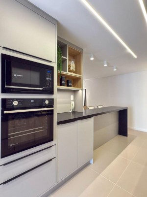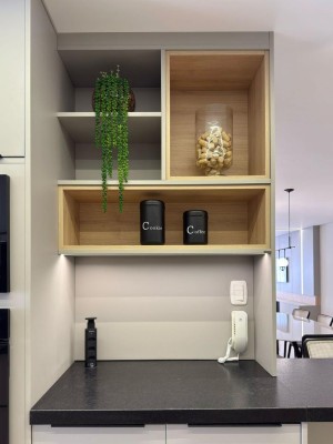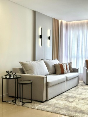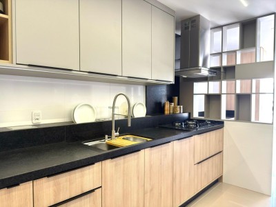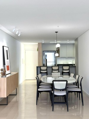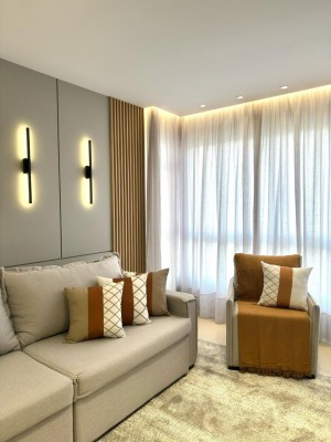 Descrição › Apartamento Mobiliado e decorado com eletros, pronto pra morar, de três dormitórios sendo um suíte, sala de estar e jantar com sacada integrada, cozinha, área de serviço, espaço gourmet com churrasqueira e sacada integrada, dois banheiros.