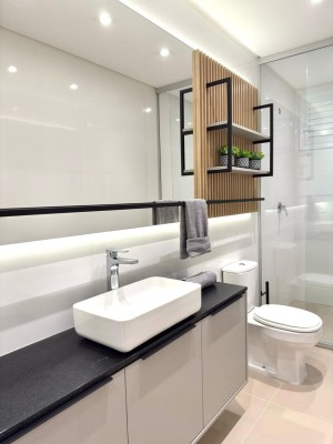 Dois elevadores, Sistema de monitoramento por câmeras, Salão de festas e hall de entrada mobiliados, Rebaixo em gesso em todos ambientes, Esquadrias em Alumínio, Sistema de água quente, Medidores individuais, Acabamento em massa corrida em todos ambientes, Fachada com revestimento em pastilhas, cerâmicas nas sacadas, Espera para ar condicionado.
