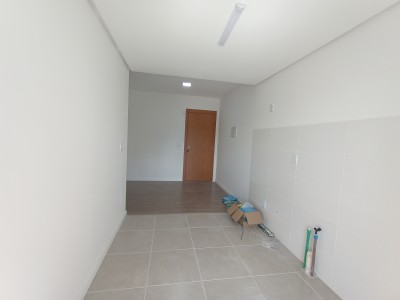 Descrição › Apartamento com 02 dormitórios, sala, cozinha, banheiro, área de serviço e box de garagem.
