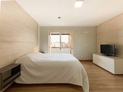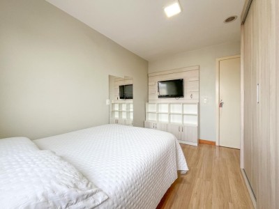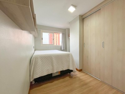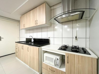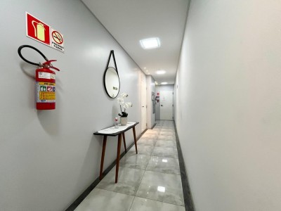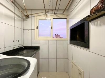 O apartamento possui uma ampla sala de estar, jantar e cozinha integradas, área de serviço e uma sacada com uma vista deslumbrante da cidade. Ficarão no imóvel os móveis fixos.