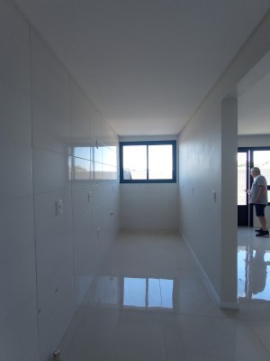 Descrição › Apartamento com 02 dormitórios com uma suíte, sala, cozinha, banheiro, área de serviço e box de garagem.