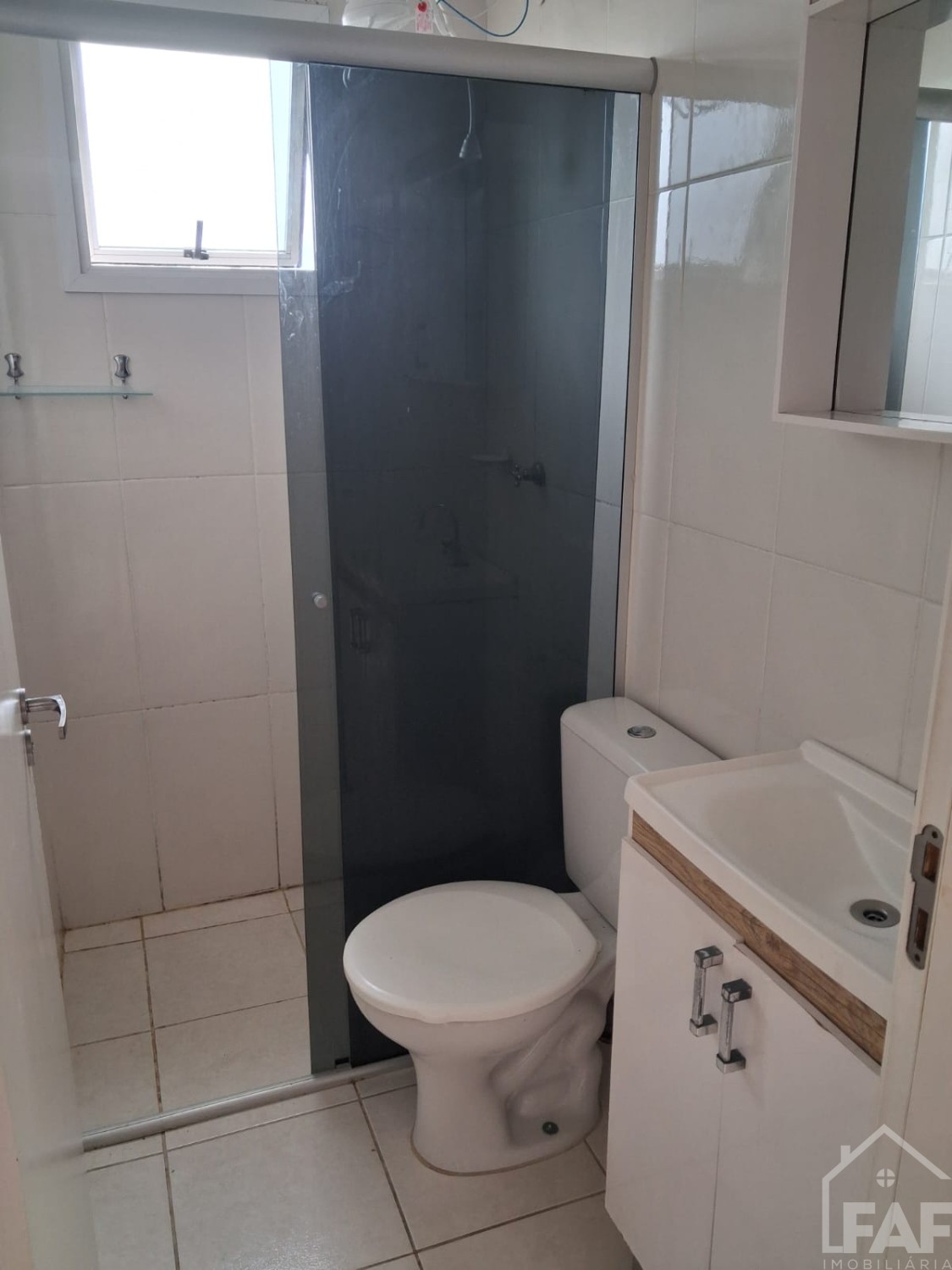 Com 02 dormitórios, sala, cozinha, área de serviço e box de garagem.