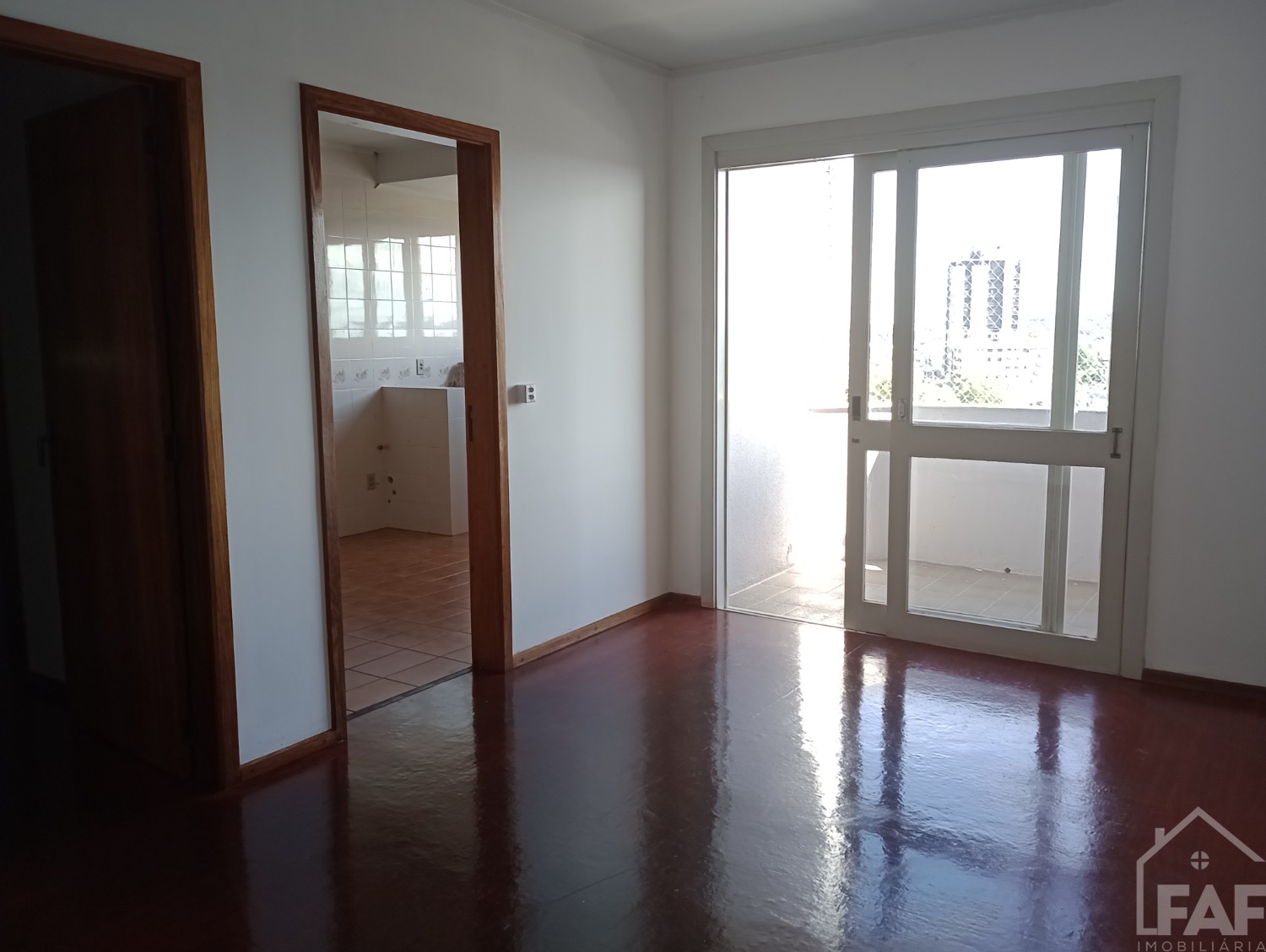 Descrição › Apartamento com 02 dormitórios, sala, cozinha, banheiro, área de serviço e box de garagem.