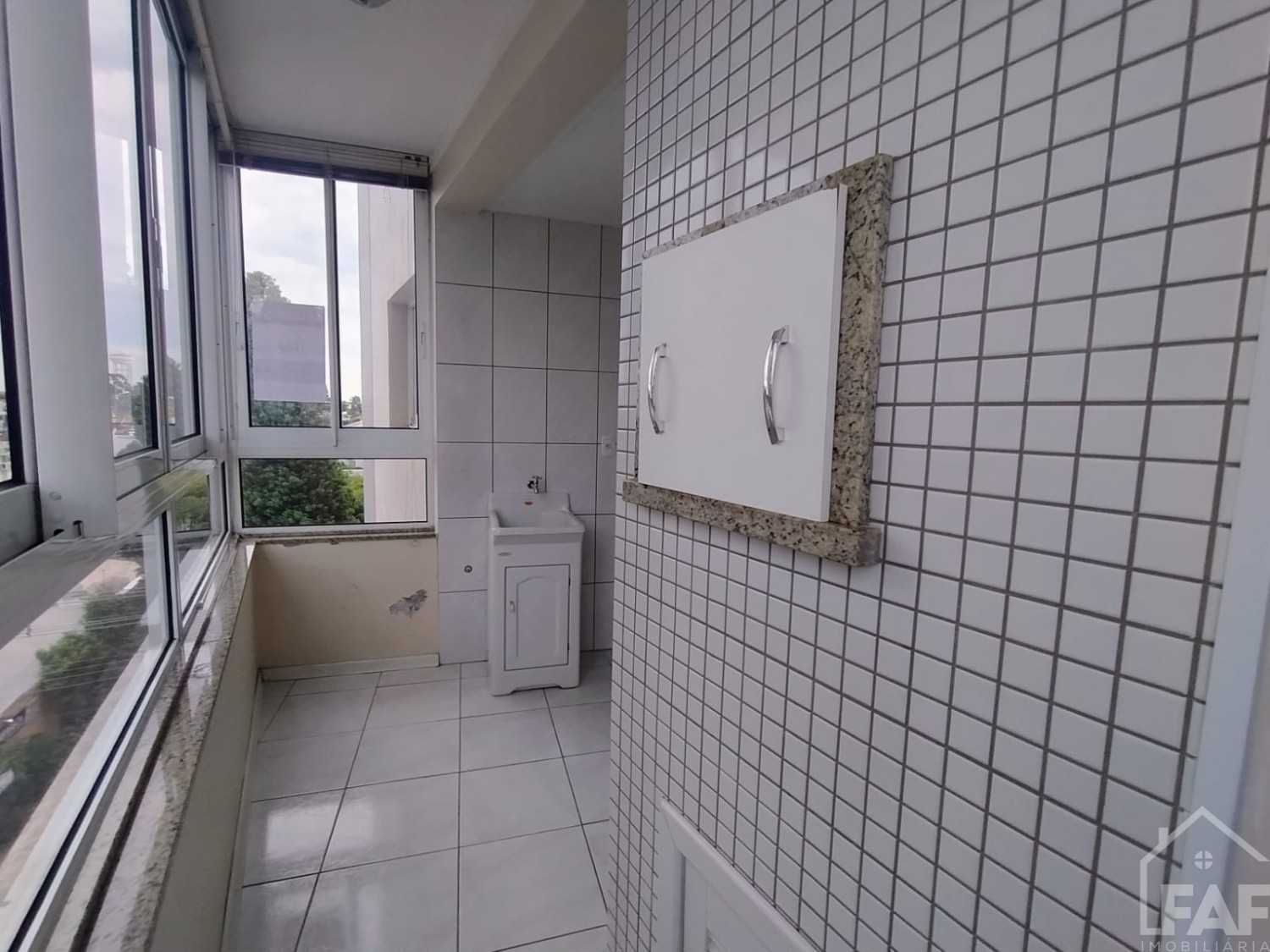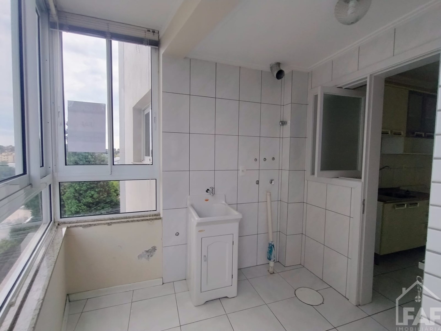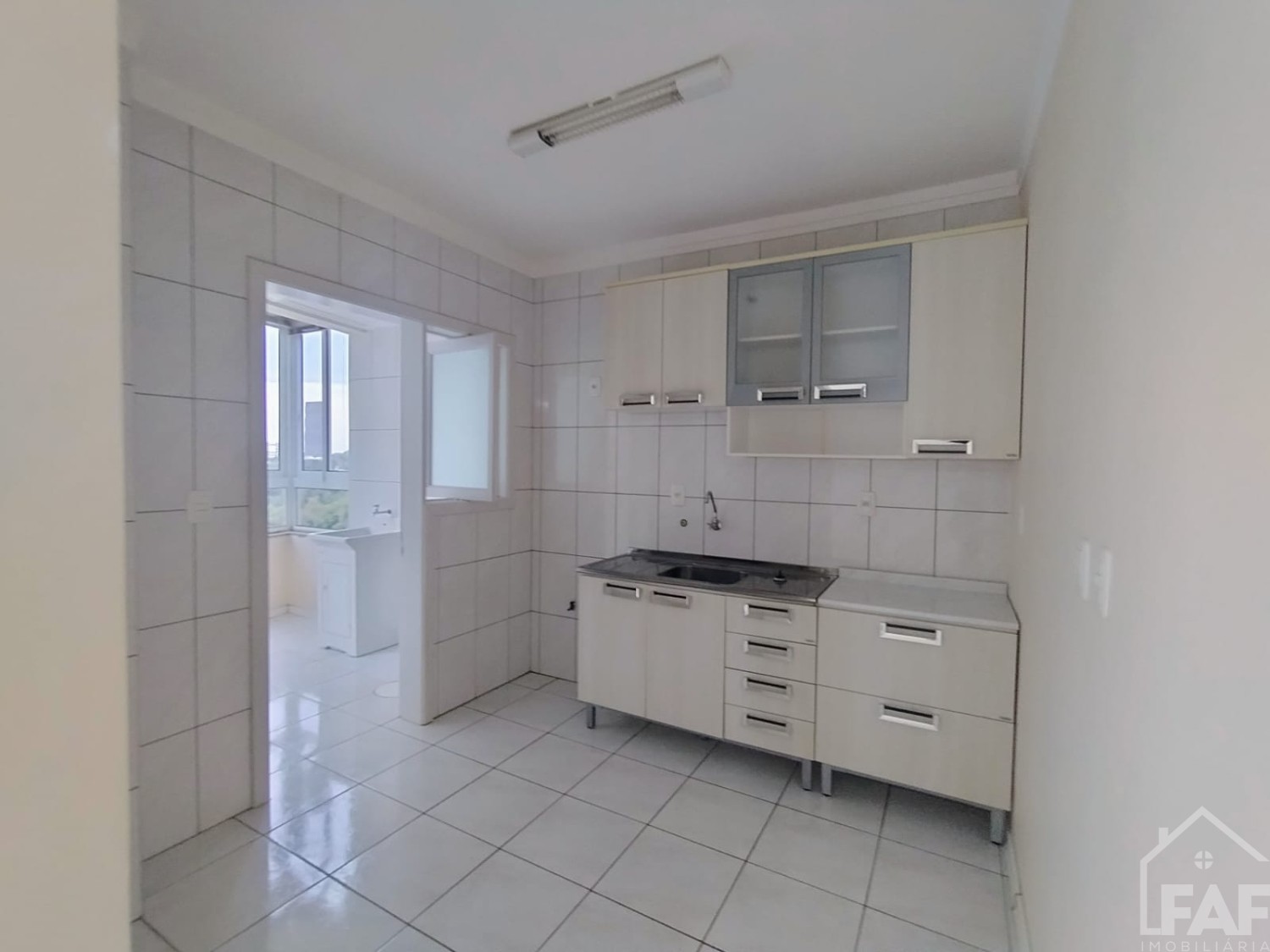 Descrição › Apartamento com 02 dormitórios, sala, cozinha, banheiro, área de serviço e box de garagem.