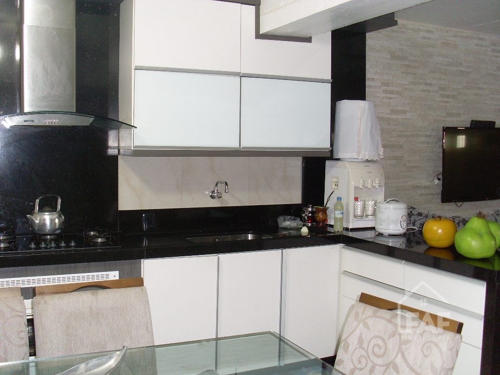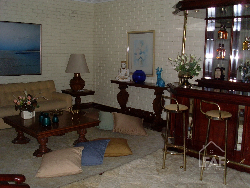 Descrição › Casa de alvenaria composta de três dormitórios sendo um com suíte, duas salas, três banheiros, despensa, área de serviço, cozinha, canil, garagem para dois carros. Ficam os móveis sob-medida.