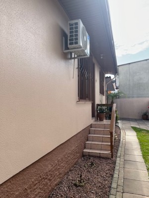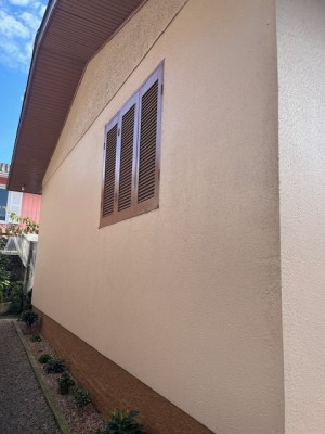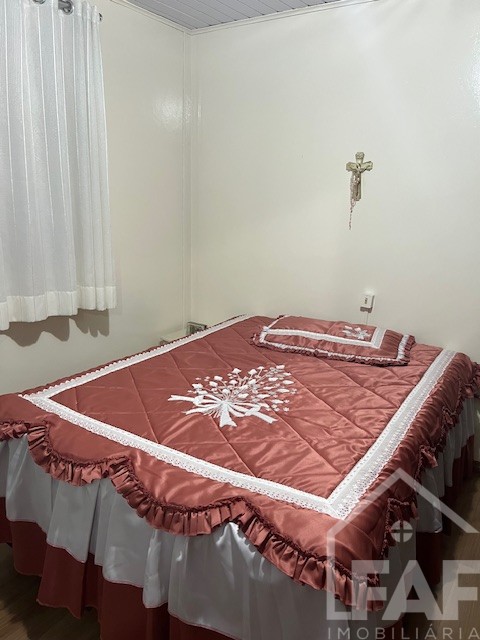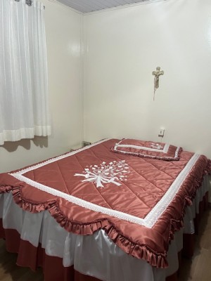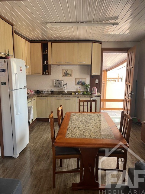 A casa é dividida em três dormitórios, sala de estar e jantar, banheiro e garagem.