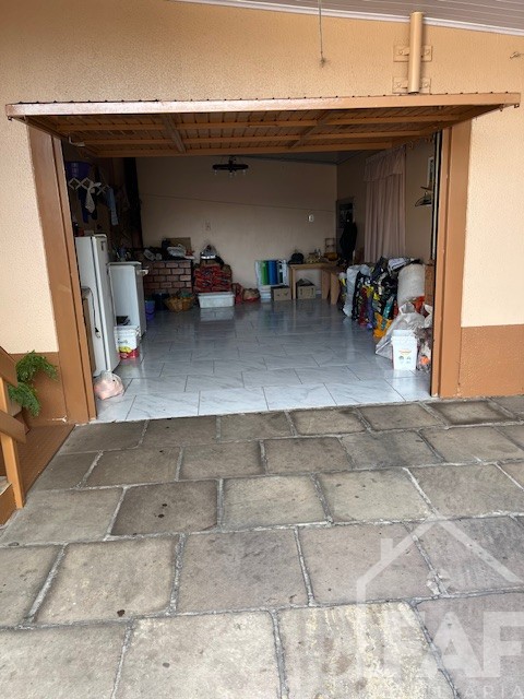 Descrição › Casa de alvenaria com divisórias internas e assoalho de madeira, medindo 63m² mais garagem.