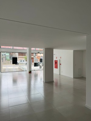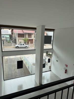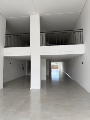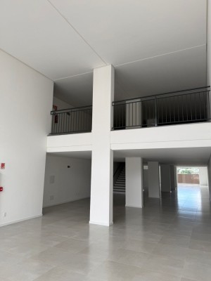 Descrição › Sala comercial térrea com aproximadamente 455m², mezanino e uma área externa de 35m².