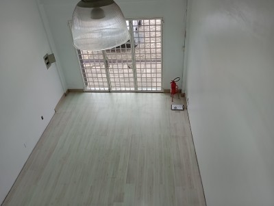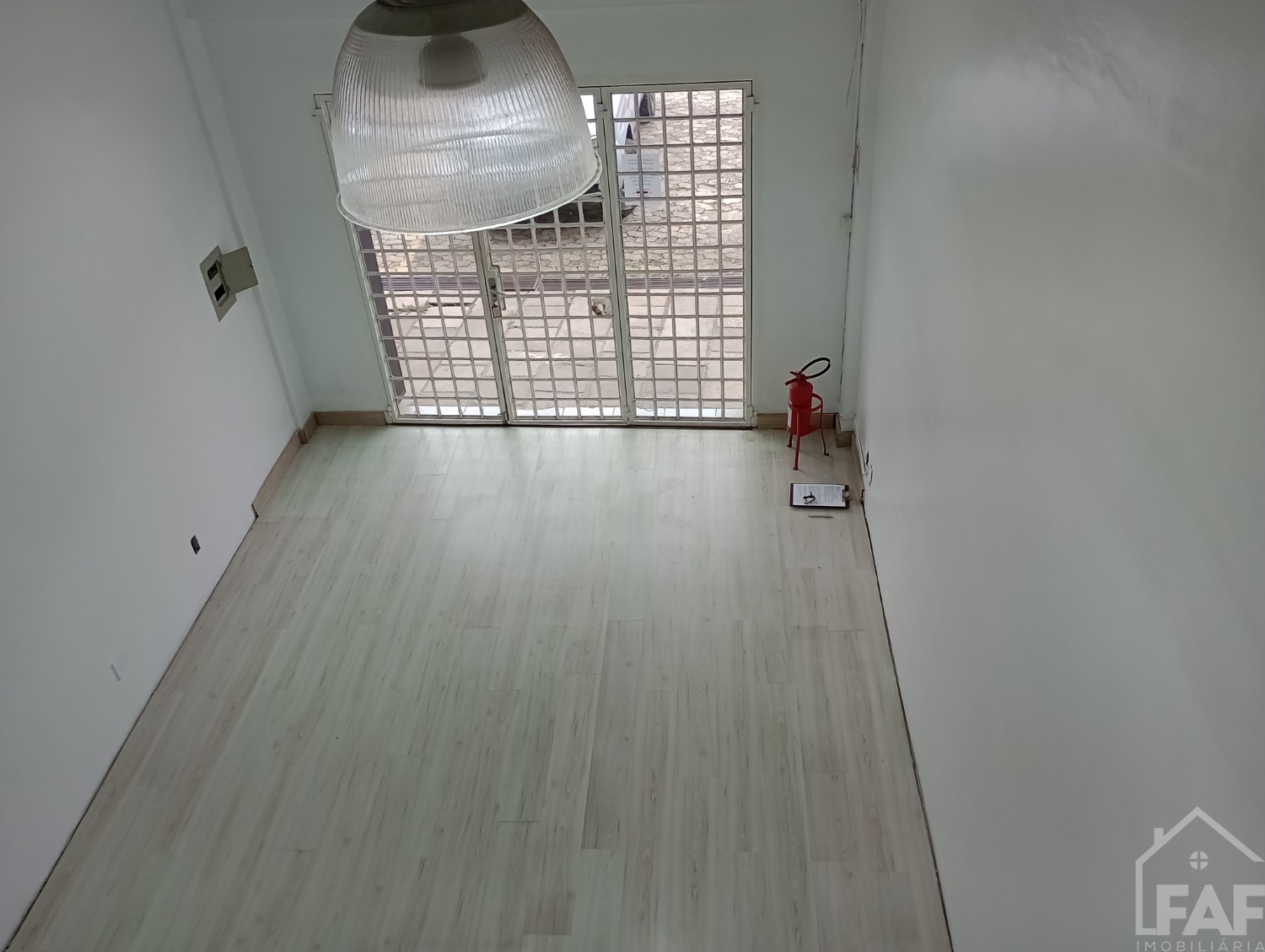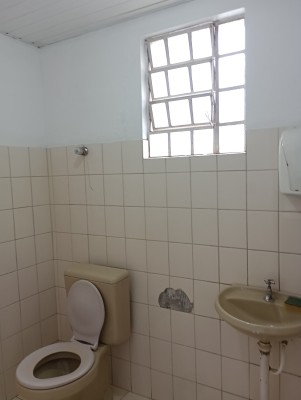 Descrição › Sala comercial térrea com mezanino, depósito e banheiro.