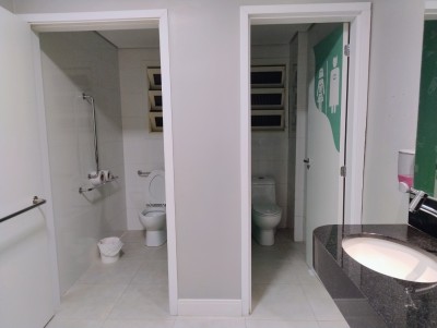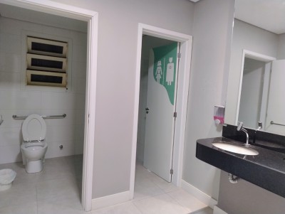 Descrição › Sala comercial com aproximadamente 170m² com 02 banheiros.